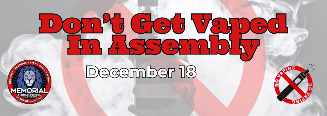 On Thursday, December 18, Memorial Middle School students will attend our Don’t Get Vaped In assembly. This session shares clear facts about vaping, nicotine addiction, and how companies market these products to kids so that students can make smarter choices.