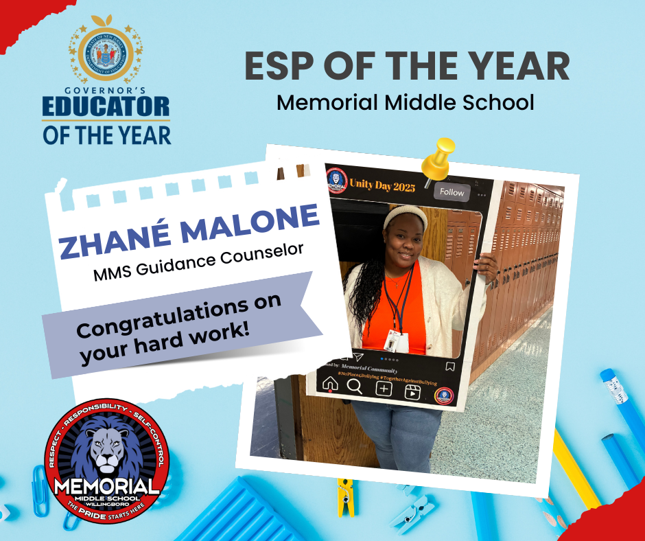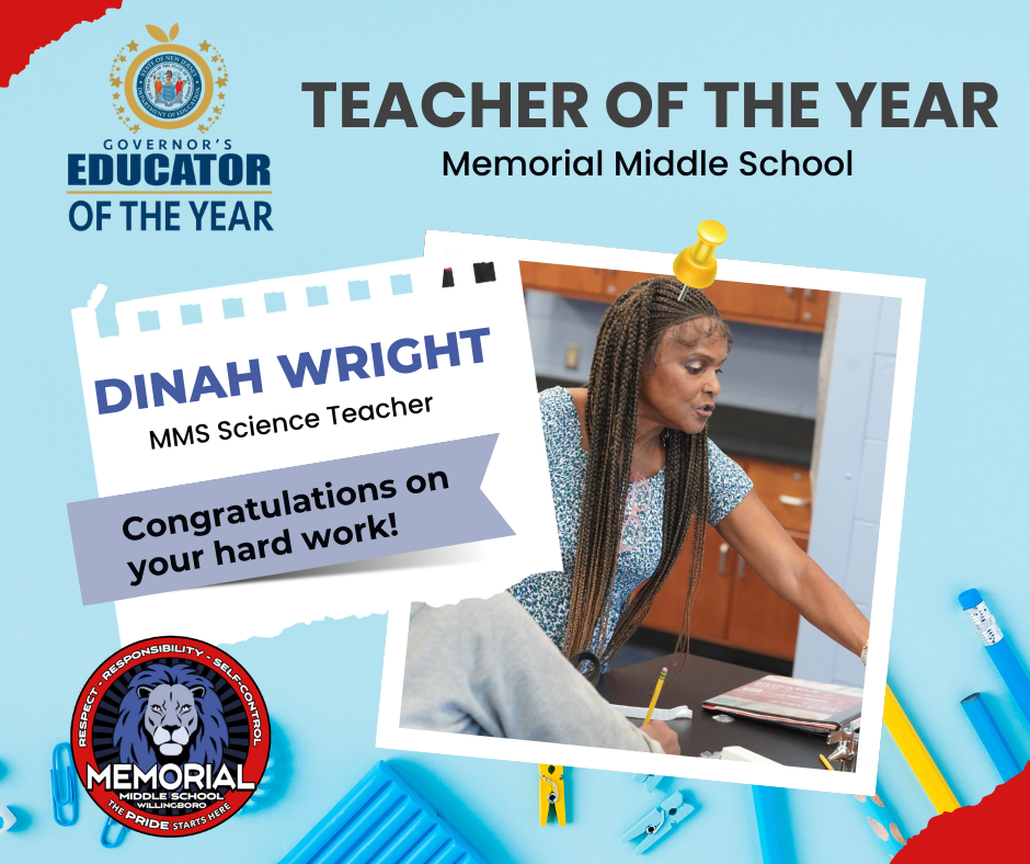 Please join us in congratulating Ms. Wright and Ms. Malone on these well-deserved honors. Their work reflects the very best of Memorial Middle School and our shared commitment to serving students with excellence and care. |