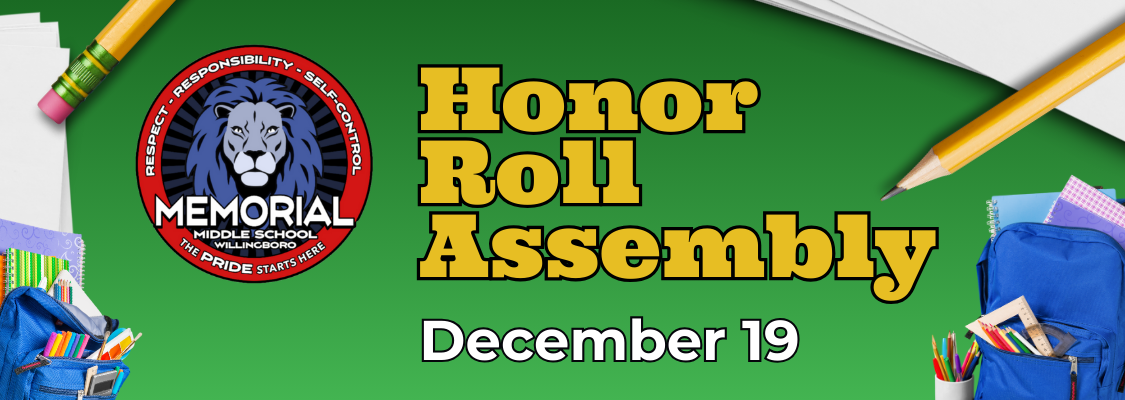 Memorial Middle School families, please mark your calendar for our Honor Roll Assembly on Friday, December 19.